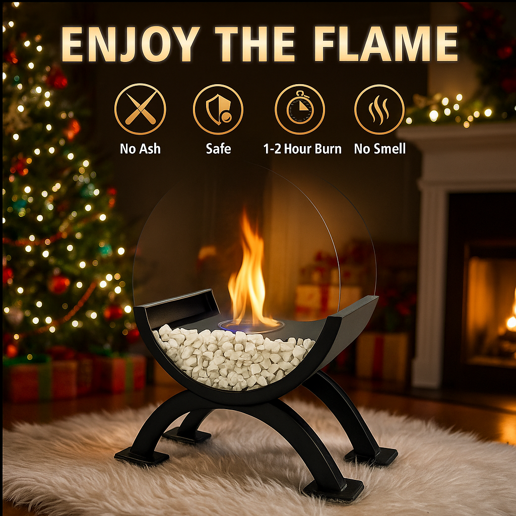 Powered by clean-burning bioethanol, no chimney or electricity is needed. Place it on your dining table, coffee table, patio, balcony, or at gatherings. Enjoy the atmosphere of a real fire - without smoke, wax, or ash.